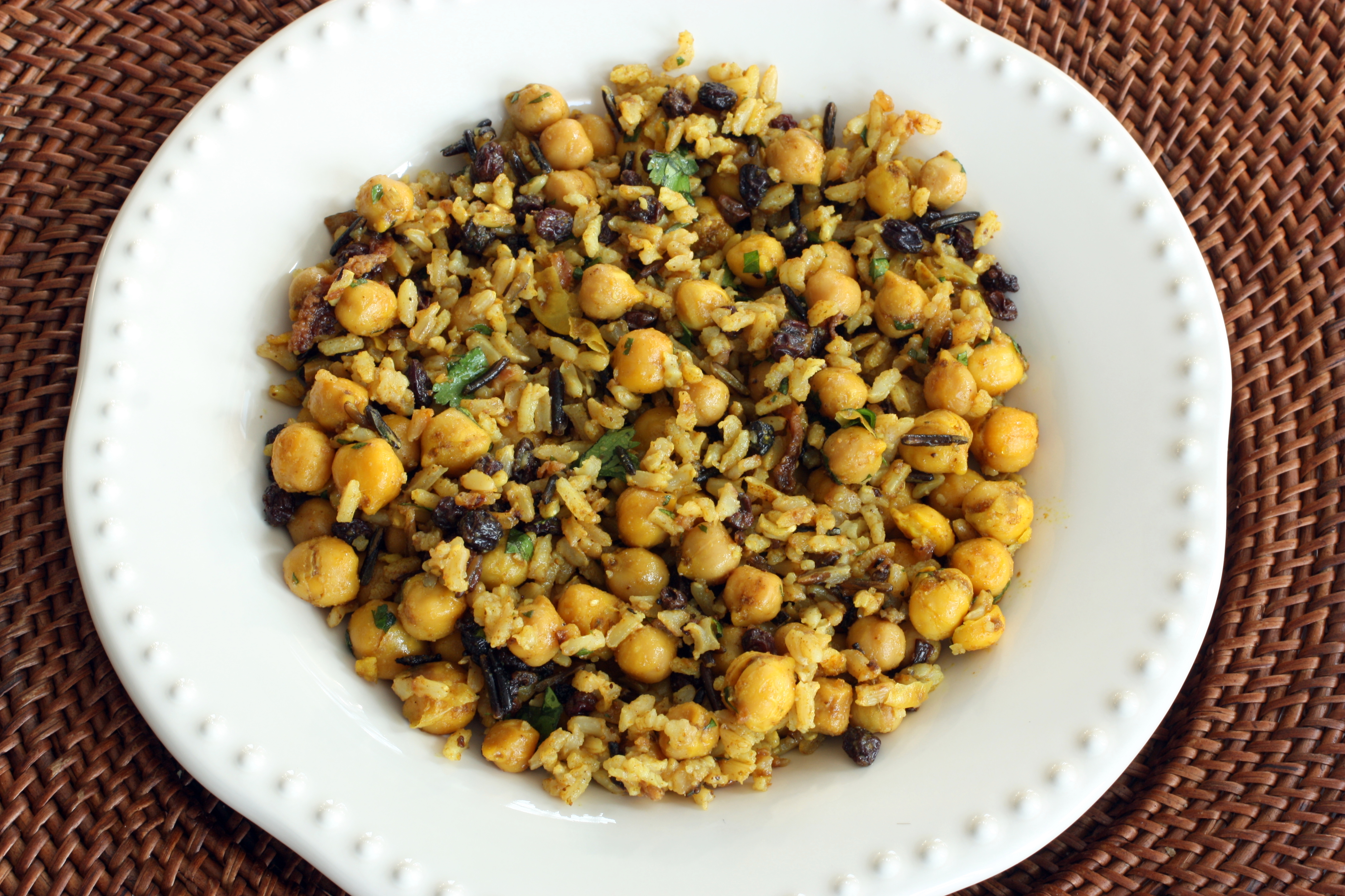 Bring to a boil, reduce to a simmer, cover, and cook until the rice is tender and the liquid is scrub or peel the potatoes; Add 2 tablespoons cold water to blender, and shake gently to rinse; 1 can garbanzo beans / chickpeas, drained and rinsed. Stir salt and pureed onion mixture into chickpeas in pan. Studded with chickpeas and dried fruit, it's perfect as a side or main dish.