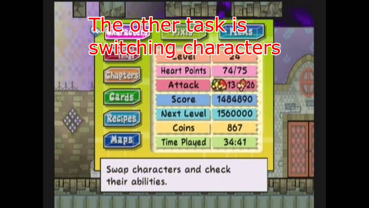 Paper Mario Countdown To Chaos Fanfic Tv Tropes from static.tvtropes.org Dried pasta + yellow berry. The game follows mario, peach, bowser. Ultra shroom+jammin jelly=jelly ultra restores 50hp and fp whackas bump+strange leaf=deluxe feast restores 40hp and fp cake mix+jammin jelly=jelly pop restores 64fp those are really good items enjoy. I do not own any copyrights to the music. Continue right until you find a pipe surrounded by brown blocks. Best archive of super paper mario cheats, cheats codes, hints, secrets, action replay codes, walkthroughs and guides. Enter the door as peach, or the security system will try to fry you. Super paper mario is definitely worth the price.